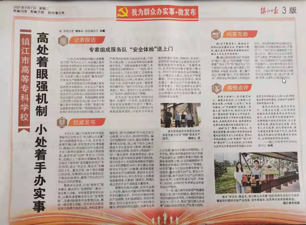 医药技术公司基层党组织“学亚夫、做亚夫”先锋团队——乡村企业安全生产专家服务团队为位于我市高校园区周边的丹徒区高资街道石马村、西斛村、水台村、巫岗村等村的70多家企业逐家提供进行安全生产隐患排查等专家服务。