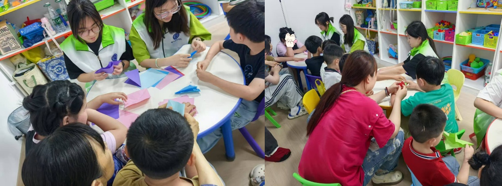 在东方星语特殊儿童发展中心,团队以黏土、折纸、绘画为载体开展活动。黏土区,孩子把黏土塑成小动物、花朵;折纸时,彩纸在志愿者指导下变千纸鹤、小船;绘画区域,孩子描绘心中世界,志愿者耐心引导鼓励。活动末,小型成果展让孩子因作品展出兴奋,也收获家长和老师的认可。